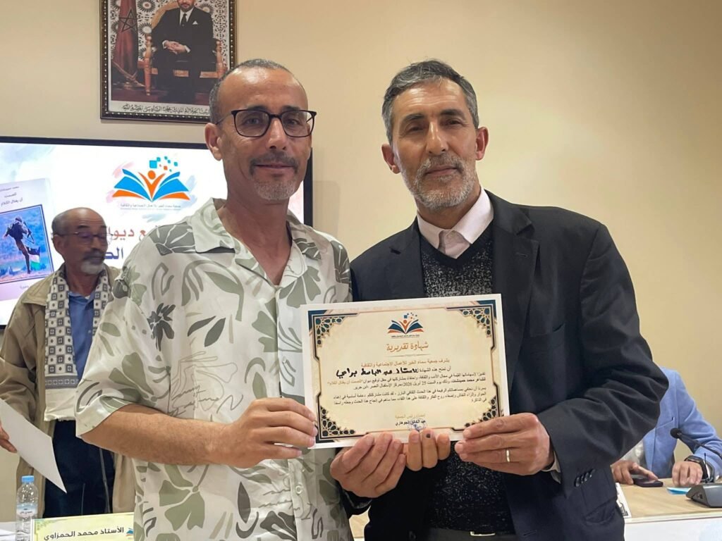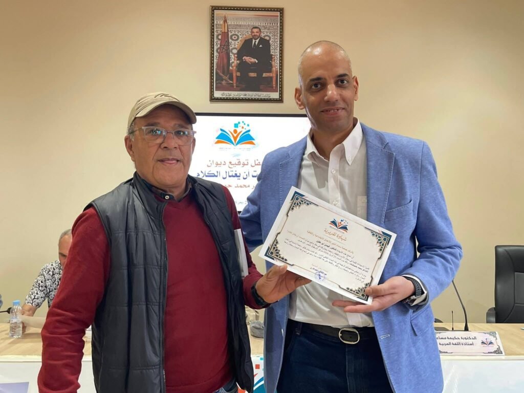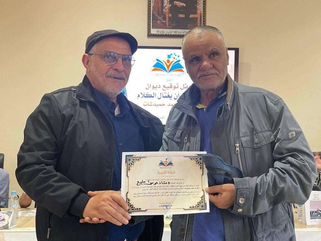وقد استُهلّ الحفل بتلاوة آيات بينات من الذكر الحكيم، أعقبها أداء النشيد الوطني، قبل أن يلقي عبد الخالق جوهاري، رئيس الجمعية، كلمة افتتاحية عبّر فيها عن اعتزاز الجمعية بتنظيم هذا اللقاء الثقافي الذي يحتفي بتجربة شعرية متميزة، مؤكدا على التزامها بمواصلة دعم المبادرات الأدبية وتشجيع الطاقات الإبداعية، ومشيدا بجهود المدير الإقليمي لوزارة الشباب والثقافة والتواصل والشباب -قطاع الشباب، عبد الله حادون، ومديرة مركز “النصر”، فاطمة الضريس، لدعم الجمعية وإنجاح أنشطتها.