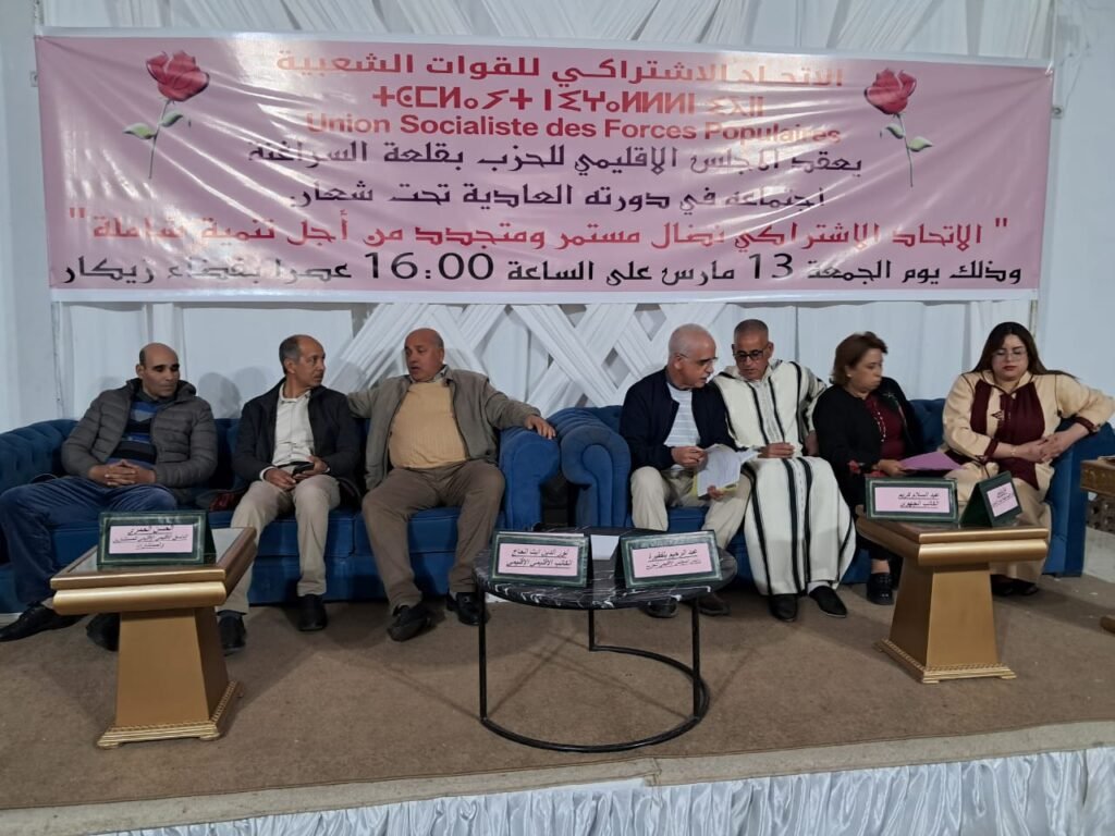 جاء ذلك خلال أشغال الدورة العادية لمجلسه الإقليمي المنعقدة، عصر اليوم، تحت شعار: “الاتحاد الاشتراكي في نضال مستمر ومتجدد من أجل تنمية مستدامة”، بقاعة المركب السياحي “اللؤلؤة الزرقاء” بمدينة قلعة السراغنة، بحضور عدد من قياديي الحزب ومناضليه و8 رؤساء جماعات ترابية بالإقليم.