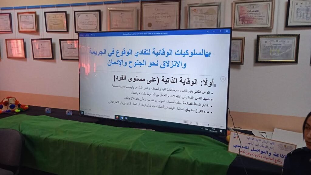 وقد تميزت الجلسة الافتتاحية بتقديم عرض توعوي لفائدة التلميذات والتلاميذ بتأطير من خلية التحسيس المدرسي التابعة لمفوضية الشرطة بمدينة العطاوية.
