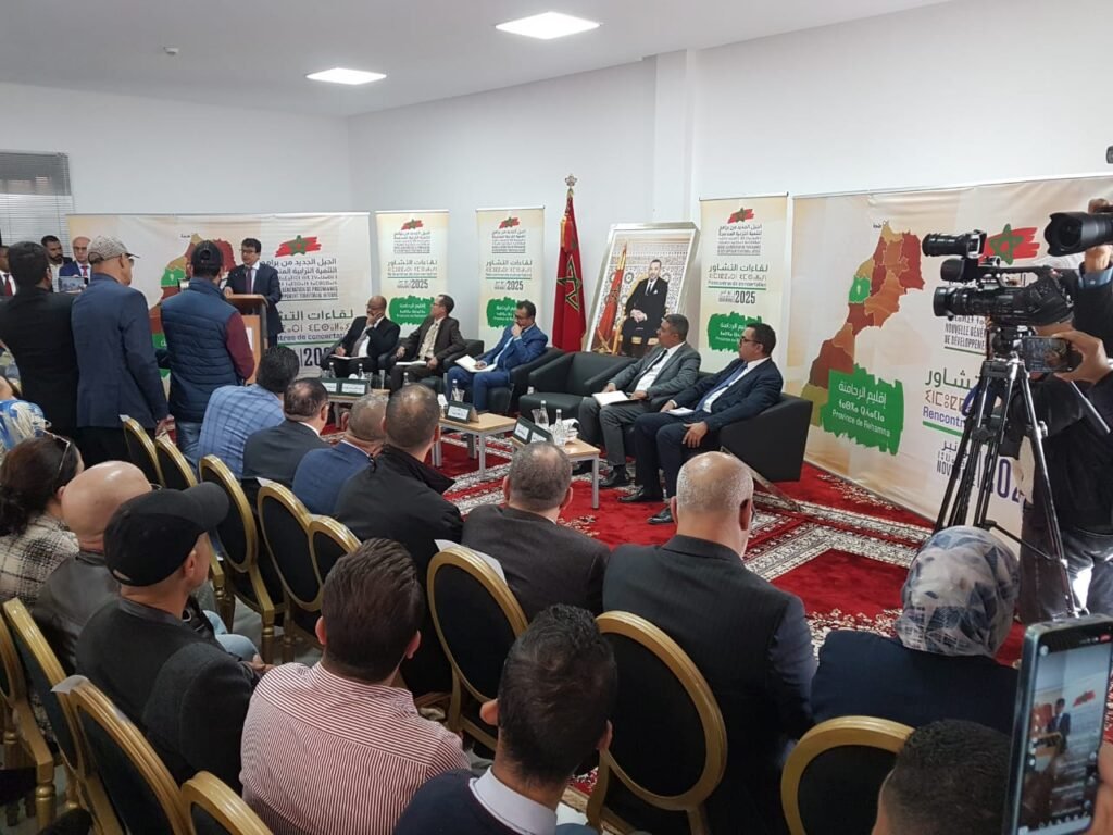 وعلى غرار اللقاء الافتتاجي بابن جرير واللقاءات الثلاثة السابقة بمراكز: بوشان وصخور الرحامنة وانزالت لعظم، يشهد لقاء اليوم، الذي انطلق، في حدود الثالثة زوالا، بثاني مركز حضري بالإقليم، حضورا متنوعا يضمّ منتخبين، وفاعلين جمعويين، وممثلي الهيئات المهنية والسياسية، وعددا من التعاونيات، إضافة إلى ممثلين عن فئات الشباب والنساء، والأشخاص في وضعية إعاقة، وكذا فعاليات من الساكنة، بما يفسح المجال أمام قاعدة حوارية متنوعة، في أفق تجميع آراء متعددة حول أولويات التنمية بهذا المجال الترابي.