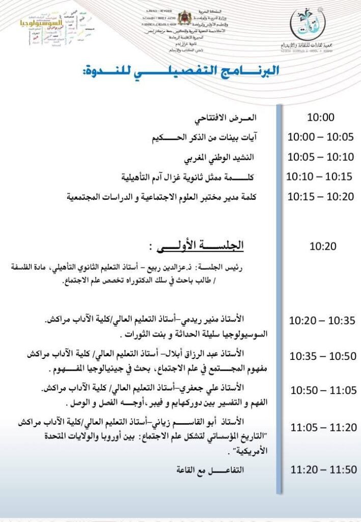 سيدي بوعثمان..ثانوية غزال آدم تحتضن ندوة وطنية حول علــــم الاجتماع و الرهـــــــانات المجتمعية