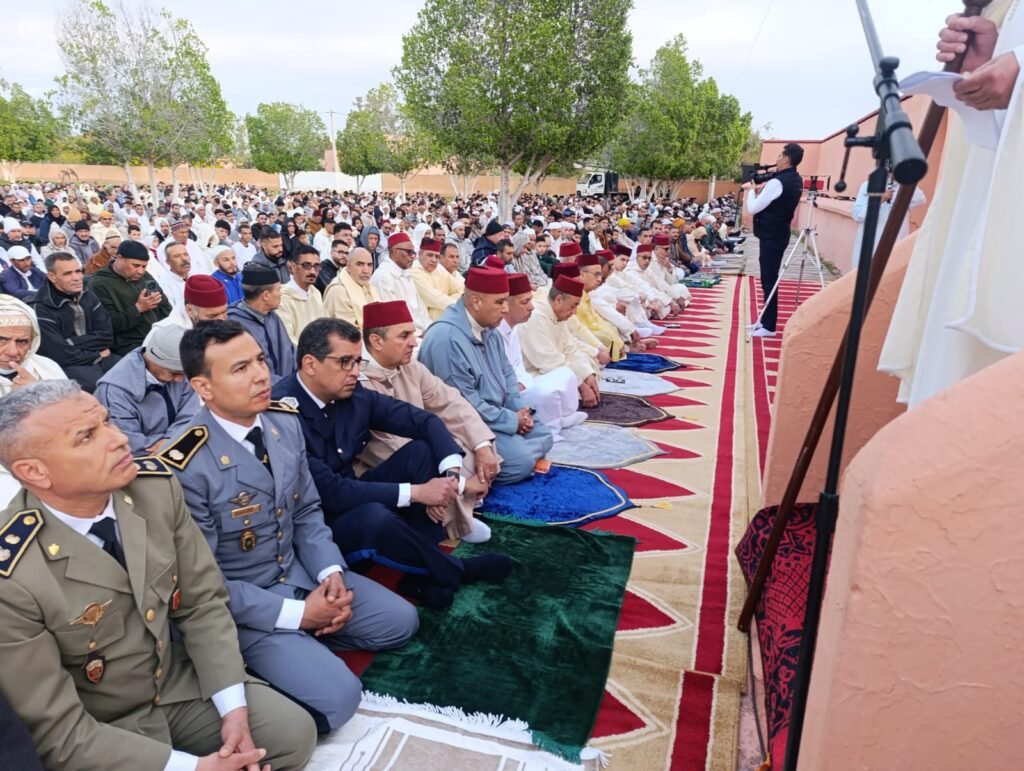 وشهدت هذه المناسبة الدينية حضور عدد من الشخصيات المدنية والعسكرية، من بينهم الكاتب العام للعمالة، ورئيس قسم الشؤون الداخلية، ورئيس المحكمة الابتدائية، ووكيل الملك لديها، إلى جانب رؤساء المجالس المنتخبة، والبرلمانيين، ومسؤولي الأجهزة الأمنية، ورؤساء المصالح الخارجية، إلى جانب عن حشد كبير من المواطنين الذين توافدوا لأداء هذه الشعيرة الدينية في أجواء إيمانية متميزة.